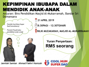 Tempoh Masa: 8.30 pg - 12.30 tghari. Terbuka kepada umum. Anjuran Biro Pendidikan Masjid Al-Mukarramah, Bandar Sri Damansara.