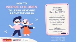 Watch the recording: https://youtu.be/B0rdkx_0Hxo ~~~~ Gain insights on the iluvquran.com approach: LOVING, CREATIVE, FUN, ENGAGING Panelists: Mr Faiz Sahri & Mrs Nur Zahirah M Sukran (co-founders of iluvquran.com) Moderators: Ahmad Fakhri Hamzah & Jamilah Samian www.coolmumsuperdad.com